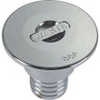 Vandafvisende rustfrit stål låg med fingertap til åbning uden brug af værktøj. Underdel i forkromet messing.