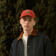 En vasket baseballkasket med en broderet fisk på forsiden. Lavet af bomuld med en justerbar rem for en brugerdefinerbar pasform.