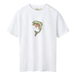 Skabt til dem, der finder ro i naturen og spændingen i tidløse hobbyer. Med et elegant trykt ørredmotiv på brystet er dette stykke en hyldest til den simple glæde ved fiskeri og naturens stille kraft.