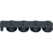 Harkens ledeblokke fører fald og kontrolliner bagud til | sikker betjening i cockpittet.| Asymmetriske skiver af glasfiberforstærket nylon for | at løfte liner op fra dækket og kombineret med| kuglelejer reduceres friktionen betydeligt.| Den sprøjtestøbte komposit top plade giver overlegen| styrke og UV-modstand. | Monteres med kraftige bolte gennem skivernes centerhul.| Kan stables.