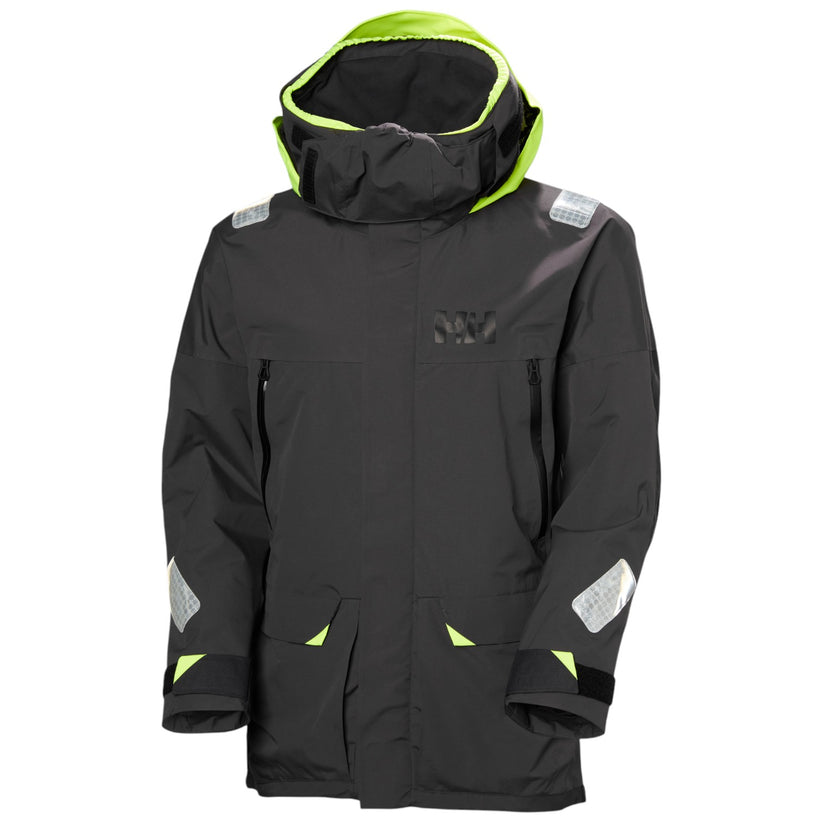 Jakken har en justerbar hætte i neonfarve, ansigtsbeskyttelse, samt justerbar kant og manchetter for en personlig pasform. Den fleeceforede krave giver ekstra varme, og de store håndlommer giver plads til opbevaring af udstyr. SOLAS-reflekselementer sikrer høj synlighed under dårlige lysforhold, hvilket gør den ideel til både offshore- og kystsejlads.