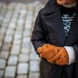 En blød og varmende damevante i ruskind af fåreskind. Et tidløst design, håndsyet med ruskindssiden udad og den bløde, pelsede inderside, der omslutter hånden med naturlig varme. Manchetterne kan foldes op eller ned, så udtrykket kan varieres alt efter stil og behov. En klassisk vinterfavorit, der passer perfekt både til hverdag og weekendture i koldt vejr.