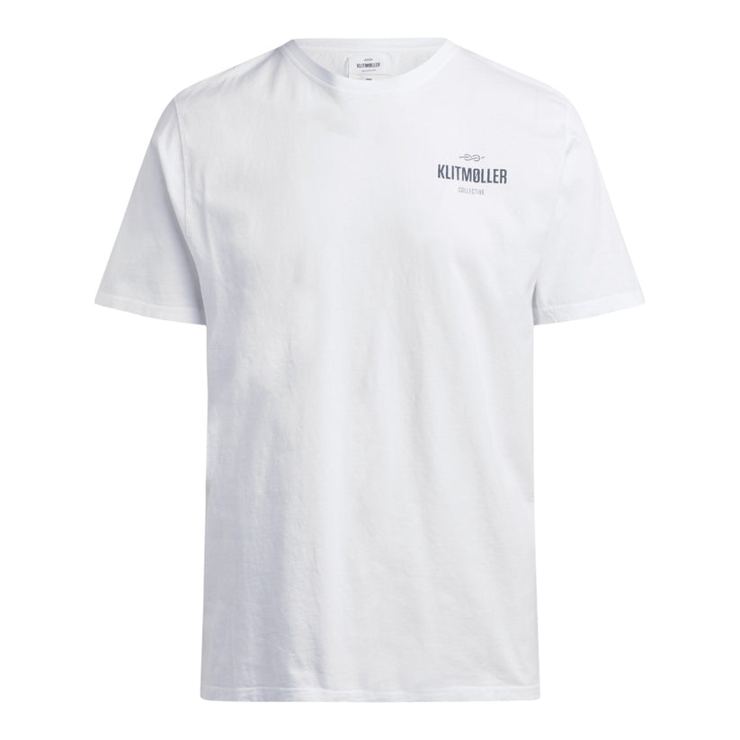 En tidløs klassiker fra Klitmøller Collective. Denne T-shirt er fremstillet i blødt, økologisk bomuld og har et minimalistisk design med et lille logo broderet på venstre bryst. Pasformen er lige og komfortabel – perfekt til både hverdag og mere afslappede sammenkomster.