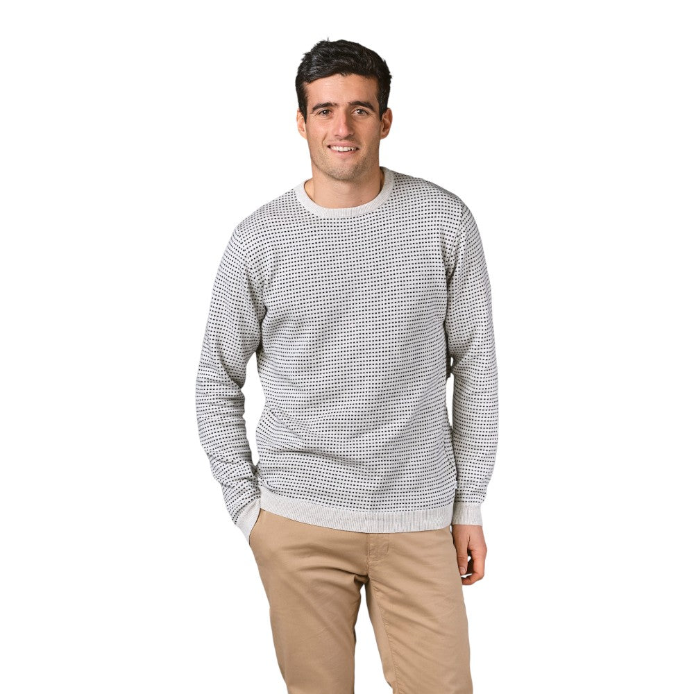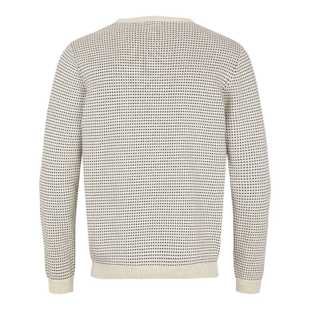 Otto er en let og behagelig sweater i 100% økologisk bomuld, designet til både komfort og stil. Den runde hals og ribkanter ved manchetter og bund giver et klassisk snit, mens det diskrete prikkede mønster i kontrastfarve tilføjer et maritimt og sofistikeret udtryk. Pasformen er normal, og vi anbefaler at vælge din sædvanlige størrelse for et afslappet og tidløst look.