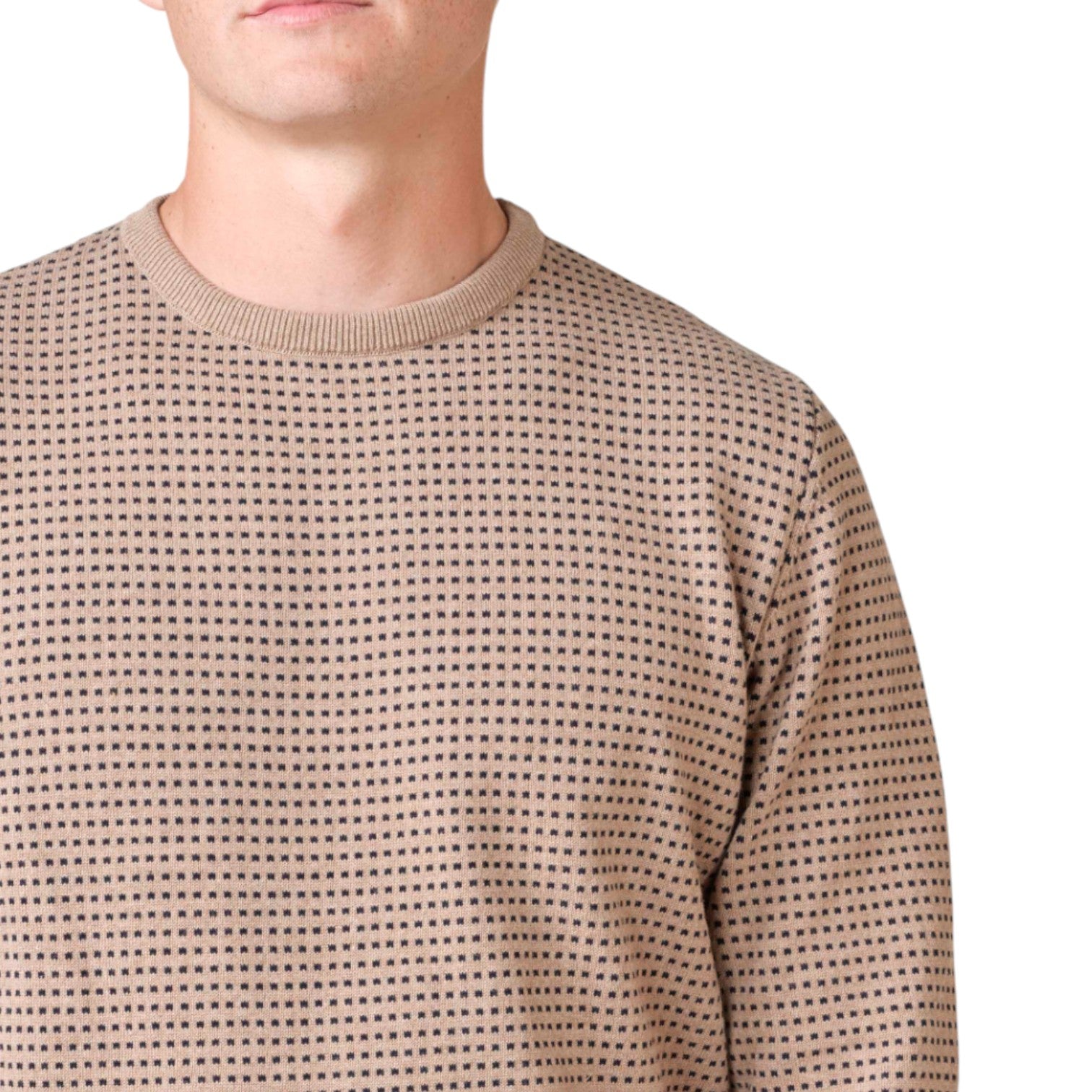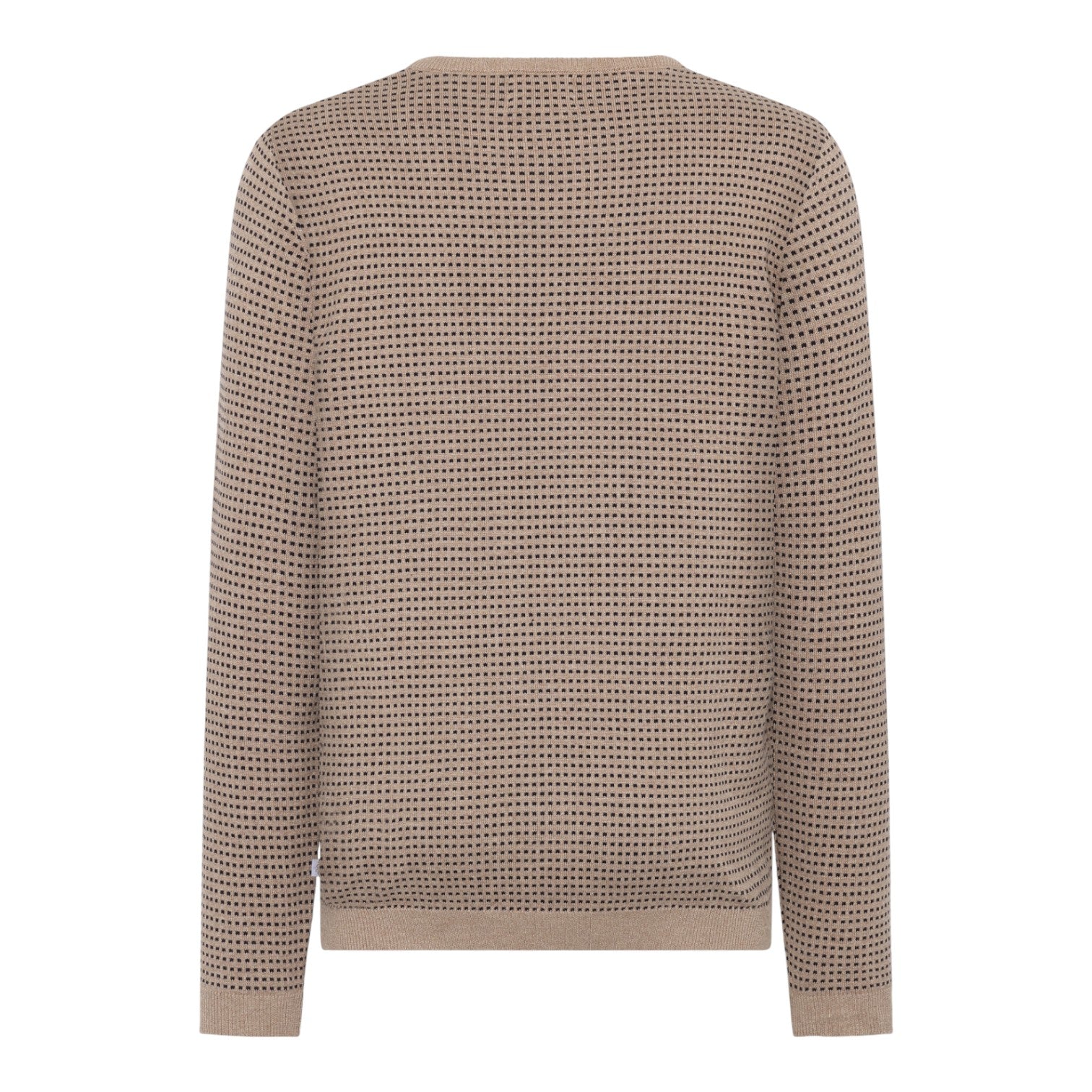 Otto er en let og behagelig sweater, designet med rund hals og ribkanter ved både manchetter og bund. Sweateren har et gennemgående prikket mønster i kontrastfarve, der giver et maritimt, men samtidig sofistikeret udtryk. Den normale pasform gør den alsidig og nem at style – perfekt til både hverdagsbrug og mere afslappede lejligheder.