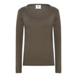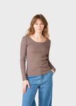 Bådhalsudskæringen og ribstrikstrukturen fremhæver et feminint og stilfuldt udtryk i ét.