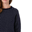 Mika er en mønstret sweater i børstet merinould med rund hals samt ribkant i manchetter og bund. Pasformen er et lige snit med et lille, feminint slids i siderne. Vi anbefaler at vælge din normalt foretrukne størrelse.