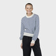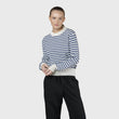 Gunilla er en stribet strik med drop-skuldre, rund hals samt en bred rib i manchetter og bund.