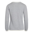 Flot mønster der dækker hele trøjen, samt tynd ribstrik ved kraven, ærmet og om livet.