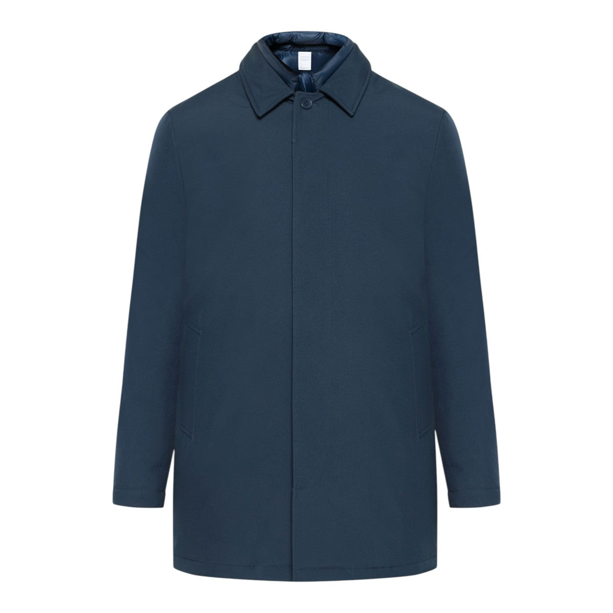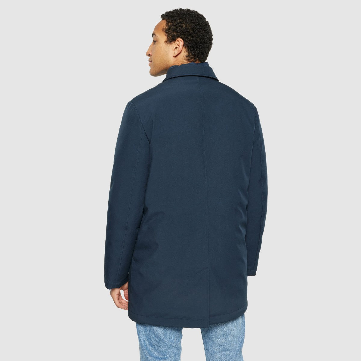 Jakken har en klassisk regular fit, skjult knappelukning og en elegant krave, der fuldender det rene, praktiske look.