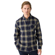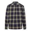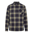 Denne varme flannelskjorte i et grafisk ternemønster kombinerer klassisk arbejderskjorte-stil med et moderne twist i olivengrøn, navy og rustbrune striber.