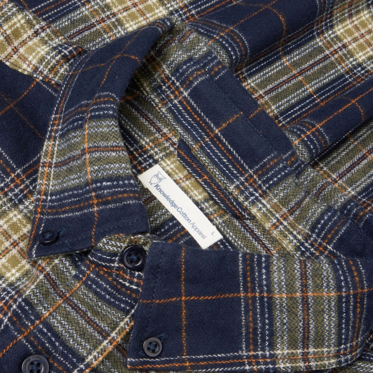Knowledge Cotton Apparel M Organic Cotton Checked Flannel Shirt Gots 7021 Blue Check