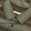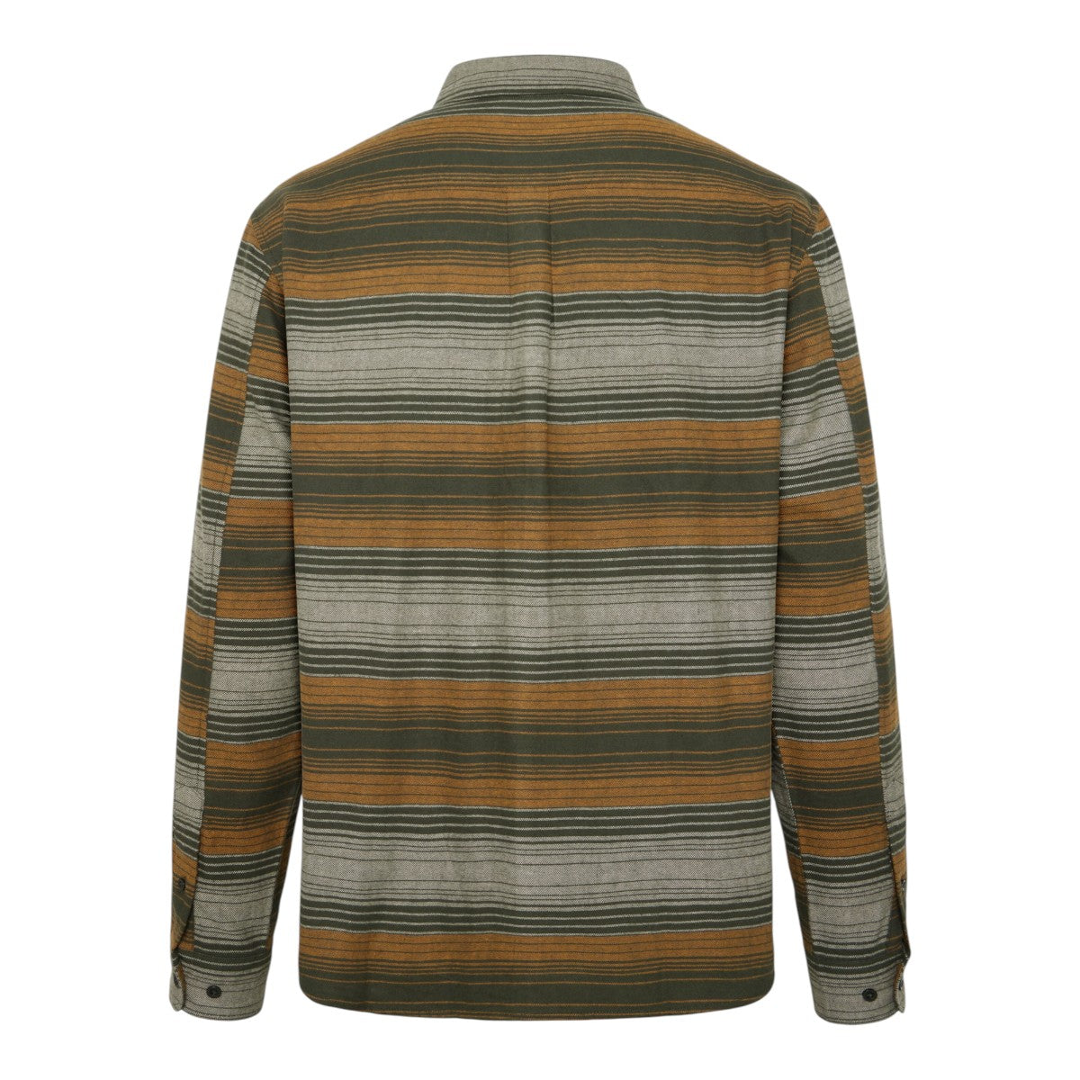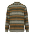 Denne klassiske skjorte med lange ærmer kombinerer et tidløst button-down snit med et moderne, grafisk stribemønster i olivengrøn, okkerbrun og lys grå.