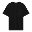 Denne enkle, men markante T-shirt i dyb sort kombinerer det klassiske crew-neck snit med et urbant twist takket være den skråstillede brystlomme med klap og trykknap.