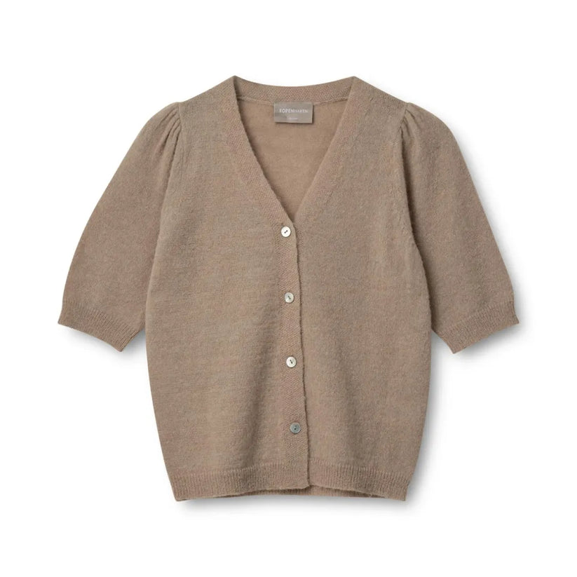 Cardigan med korte ærmer i 32% alpaka, 32% merinould, 30% polyamid og 6% elastan.