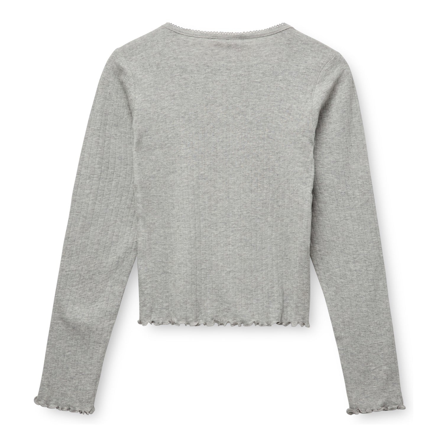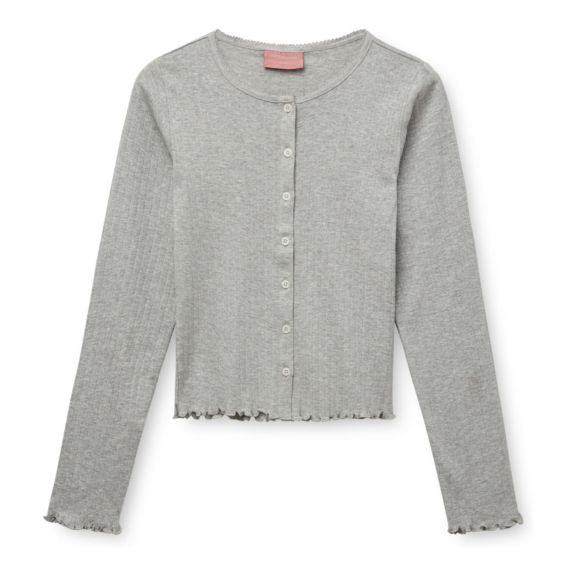 Cardigan til kvinder i 100% bomuld med et pointelle mønster og knapper foran, som kan åbnes.