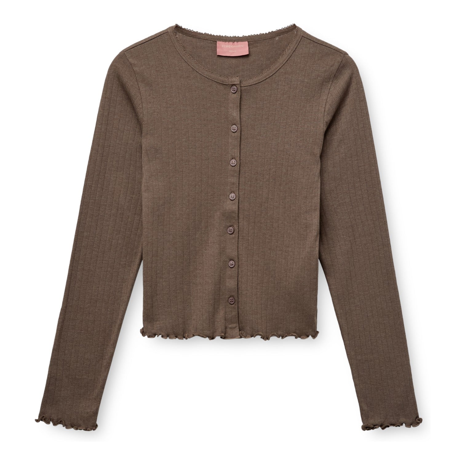 Cardigan til kvinder i 100% bomuld med et pointelle mønster og knapper foran, som kan åbnes.