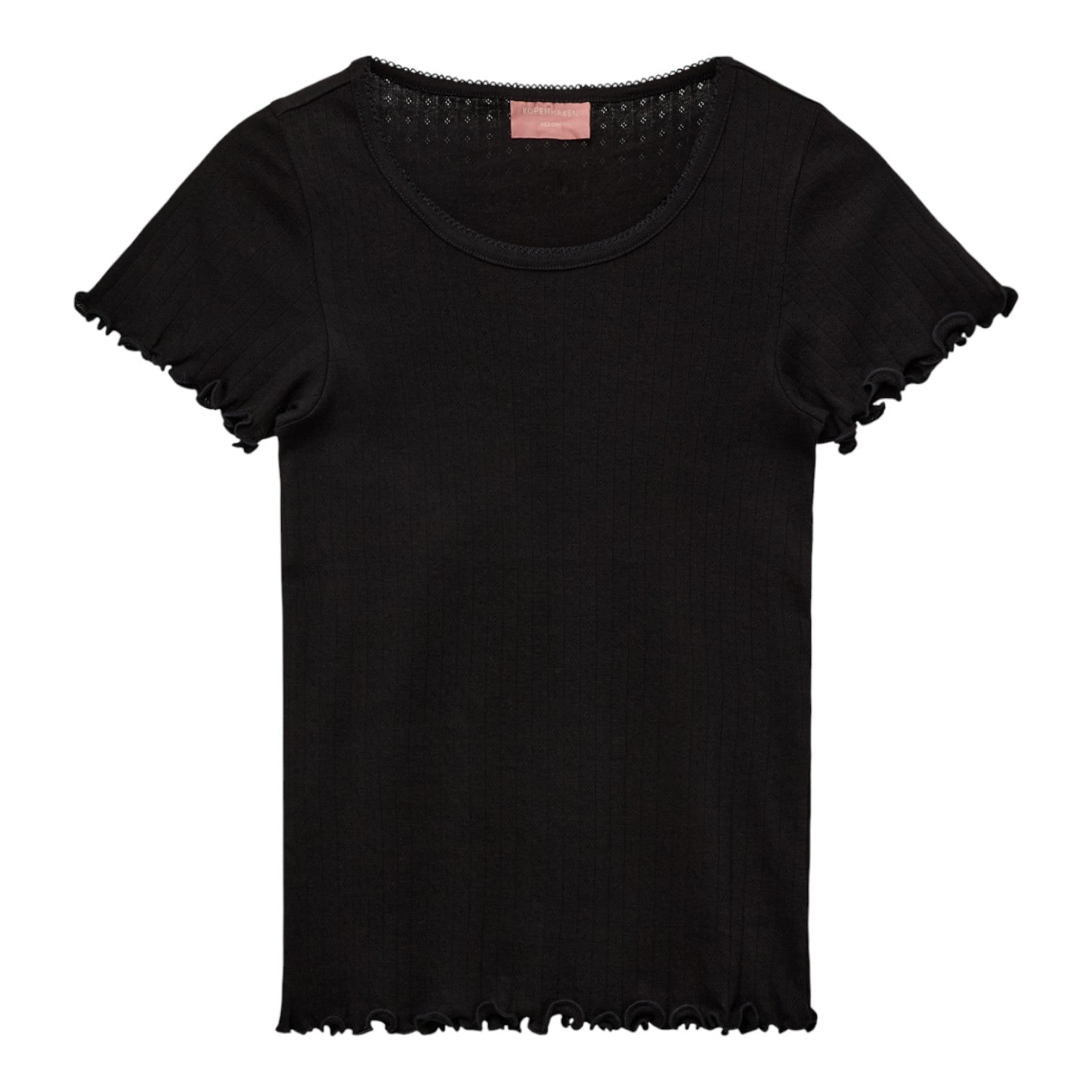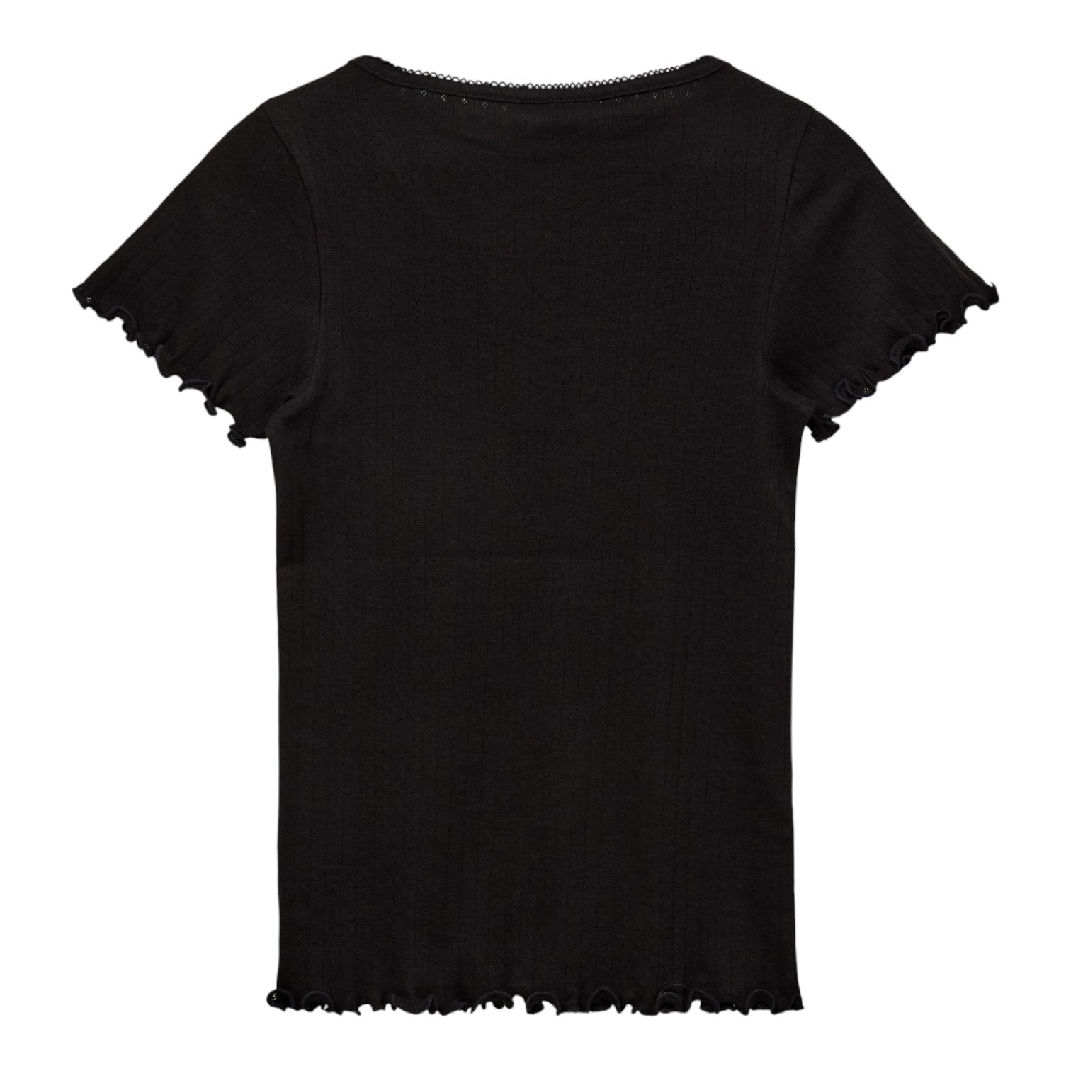 Kortærmet T-shirt er en feminin og alsidig basisstyle med fine pointelle-detaljer. Den lette bomuldskvalitet gør den blød og behagelig at have på, mens den klassiske pasform sikrer en flatterende silhuet. Perfekt til både afslappede og mere stilfulde looks.