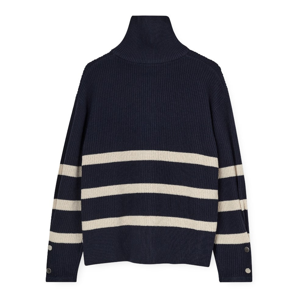 Kraftig strik i navy med kontraststriber
