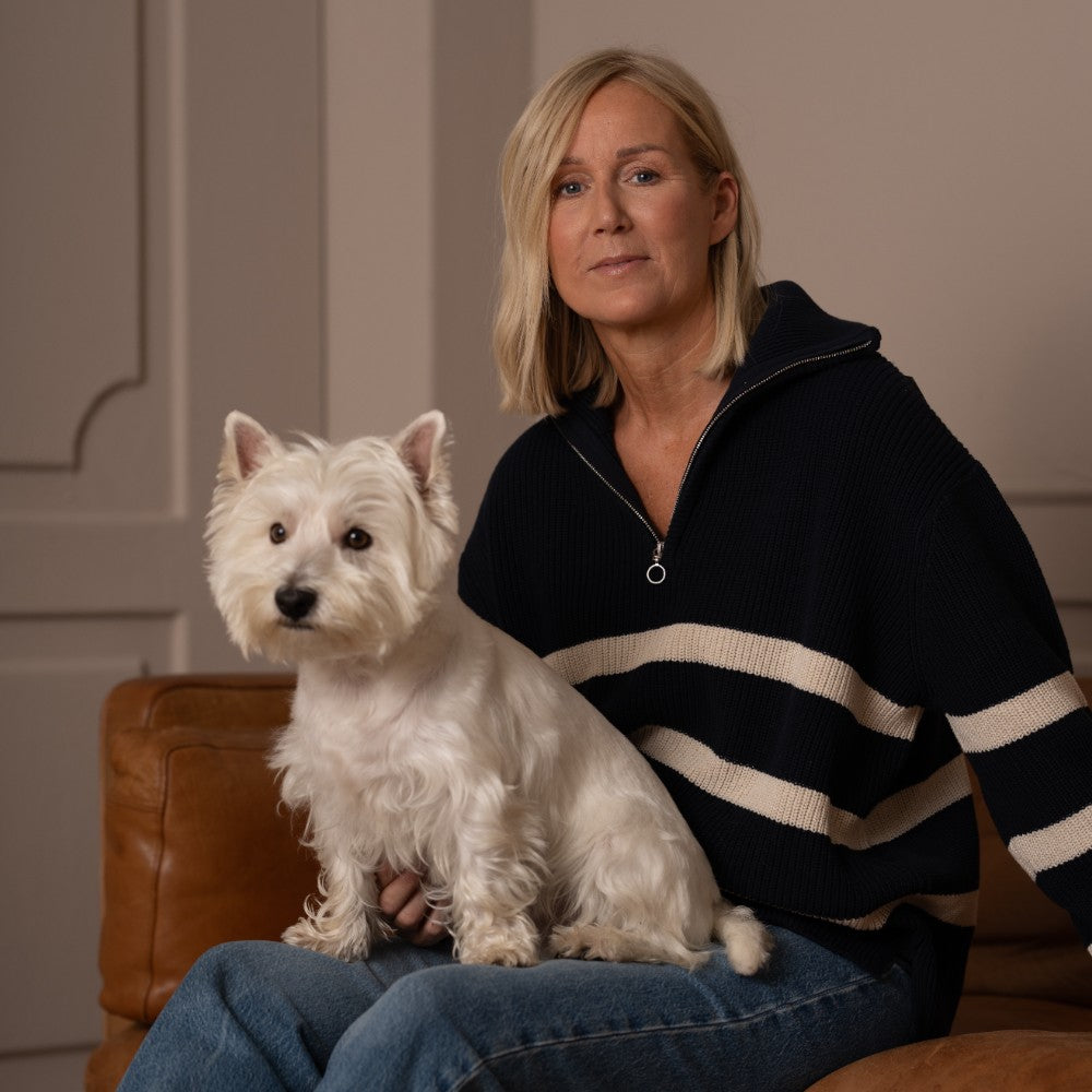 Denne Vera Knit Heavy striktrøje er en klassisk og maritimt inspireret style, der kombinerer varme, komfort og et tidløst udtryk. Den er strikket i en kraftig kvalitet med navy bundfarve og brede kontraststriber i offwhite, hvilket giver et frisk og autentisk look.
