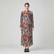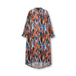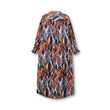 Smuk mønstret kjole i 100% Viscose Moss. Kjolen har de fineste mussetrapper under skulderen og en lille elastik på ærmet