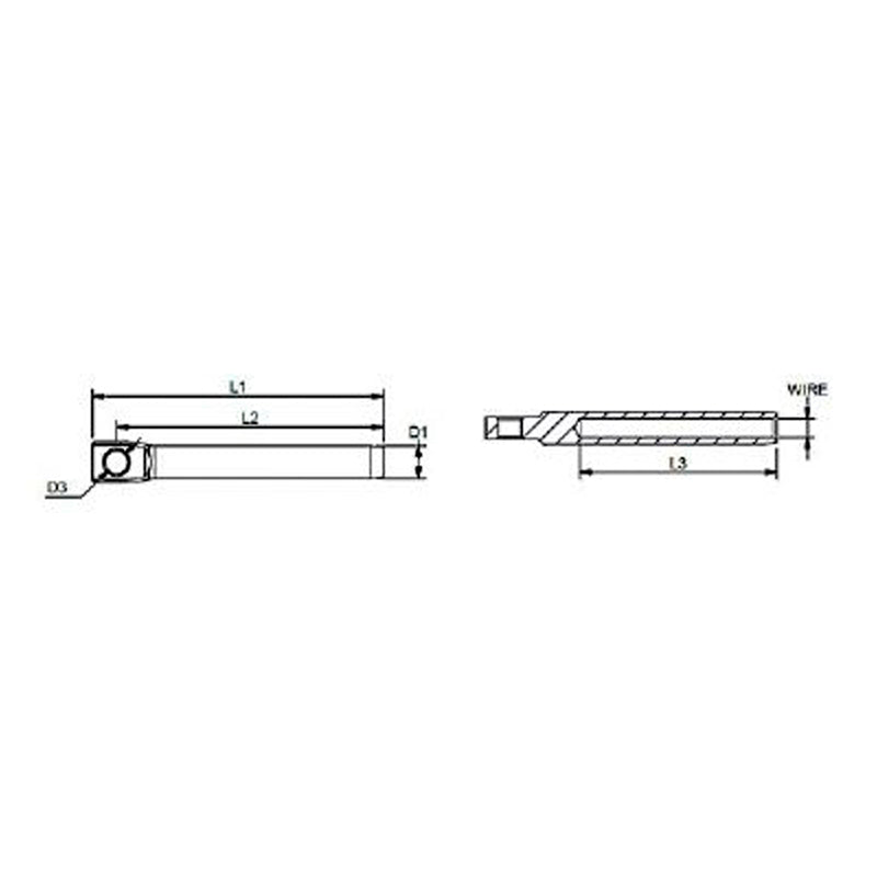 Varenr. | F/wire | Totallængde | Længde til centerhul | Øje Ø |