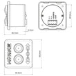 Desuden har det 3 minutters automatisk deaktivering samt buzzer-meddelelse ved deaktivering. Den runde bagflange gør det let at installere ombord.