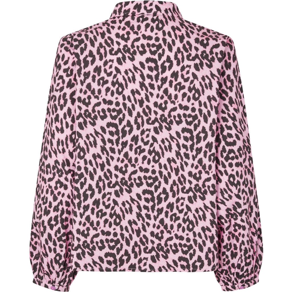 EllieLL er en let og luftig skjorte i et smukt pink leopardprint – ideel til dig, der gerne vil tilføje et farverigt og feminint udtryk til garderoben. Skjorten har en dekorativ sløjfe i halsen, som kan bindes for et elegant look eller hænge løst for en mere afslappet stil. Den bløde bomuldskvalitet og den rummelige silhuet gør den behagelig at have på hele dagen.