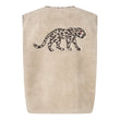 JaceLL-vesten er et cool og komfortabelt tilskud til efterårs- og vintergarderoben. Den er lavet af blødt teddy-stof med rå kanter og har et markant leopardbroderi på ryggen, der giver et personligt og moderne udtryk. Perfekt til at bruge som lag-på-lag over en skjorte eller jakke.