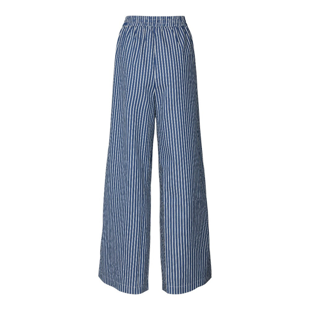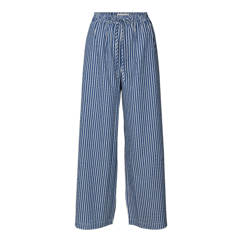 LiamLL bukserne kombinerer komfort og stil i én og samme løsning. Med deres tidløse blå/hvide striber og lette, luftige kvalitet er de perfekte til både hverdagsbrug og rejser. Den elastiske talje med snøre sikrer maksimal komfort, mens det brede snit giver et elegant fald og et sofistikeret udtryk – hele dagen.
