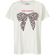 RomaLL er en klassisk hvid T-shirt med rund hals og korte ærmer, gjort ekstra iøjnefaldende med et stort frontprint af en leopardmønstret sløjfe og Lollys Laundry-logo. Den bløde bomuldskvalitet gør den utrolig behagelig at have på, og den har et afslappet, men stilrent udtryk.