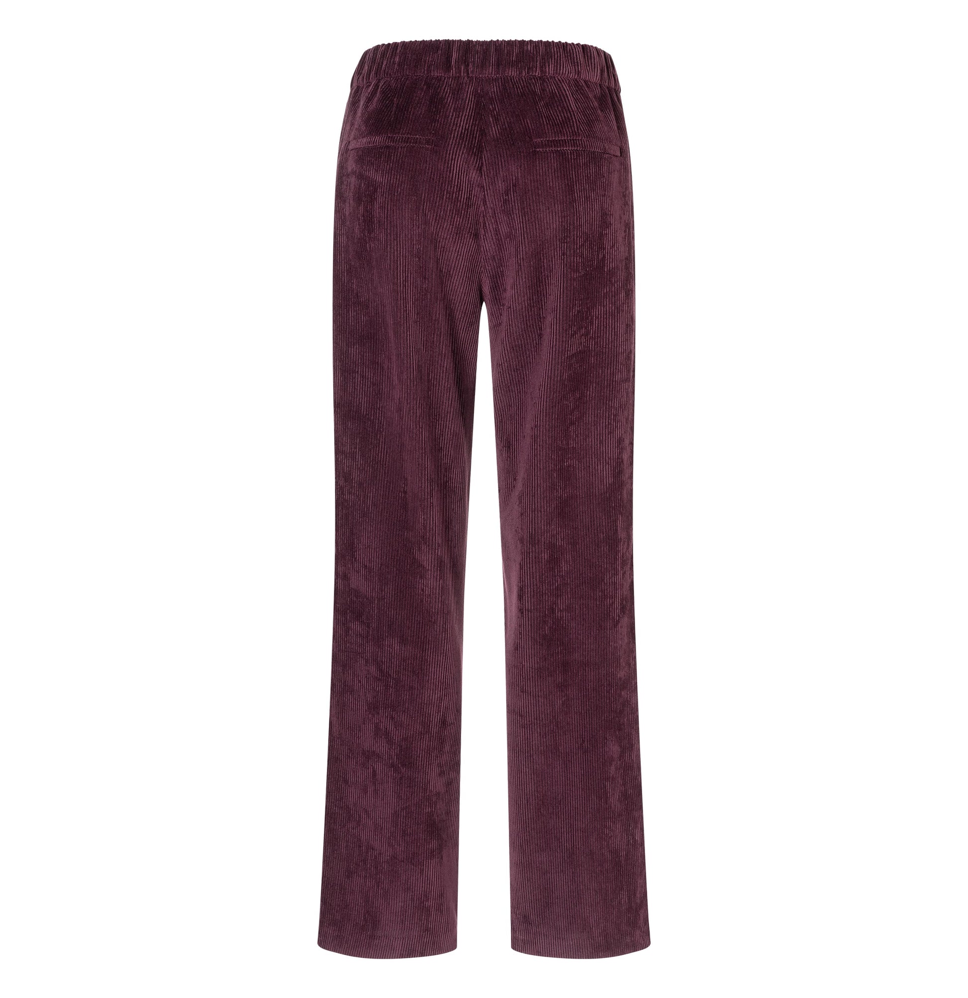 Bløde og stilfulde fløjlsbukser fra MAC i en varm bordeaux nuance. Bukserne er designet i en bredriflet fløjlskvalitet, som giver en elegant struktur og en behagelig følelse mod huden. Den elastiske linning sikrer en komfortabel pasform og gør dem nemme at tage på.