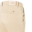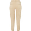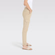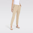 Endvidere lukket bukserne med knap og lynlås, og de har et lille opsmøg ved anklerne.
