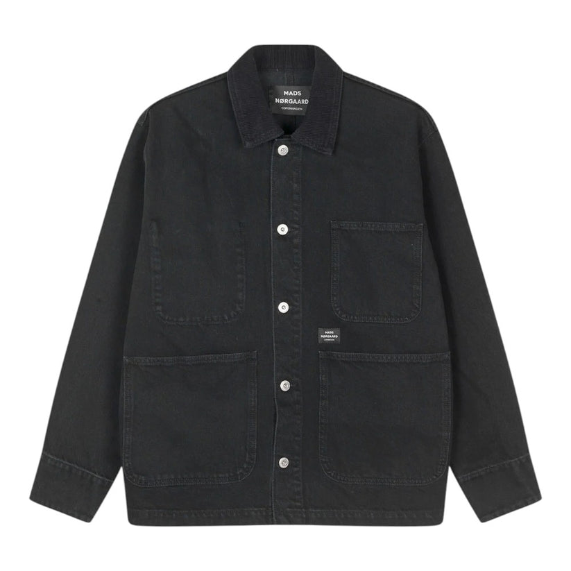 Workwear jakke i en tung bomuld. Pasformen er en smule oversized. Fire store lommer foran og en krave i fløjl.