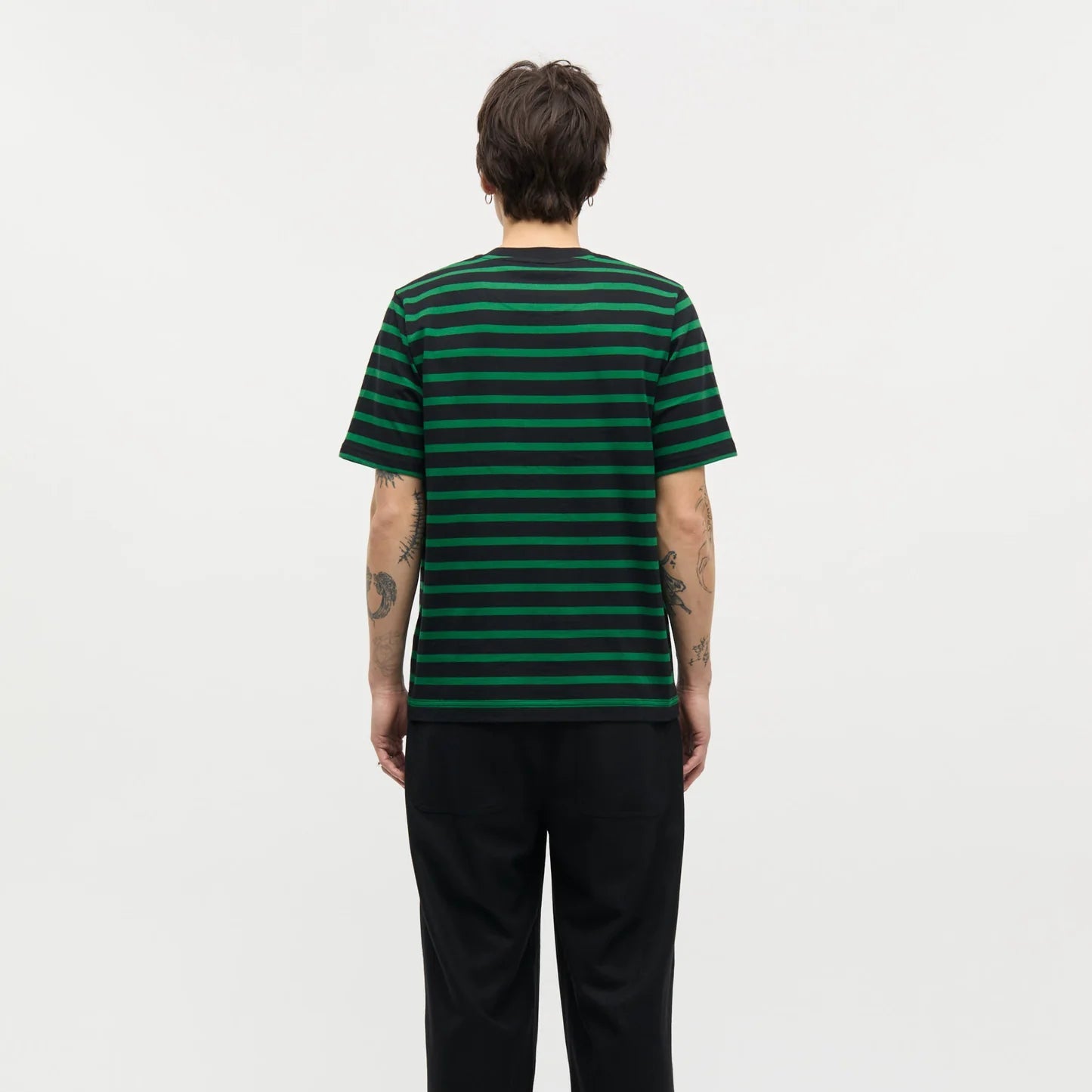 Mads Nørgaard M Cotton Jersey Stripe Frode Tee Black Verdant Green