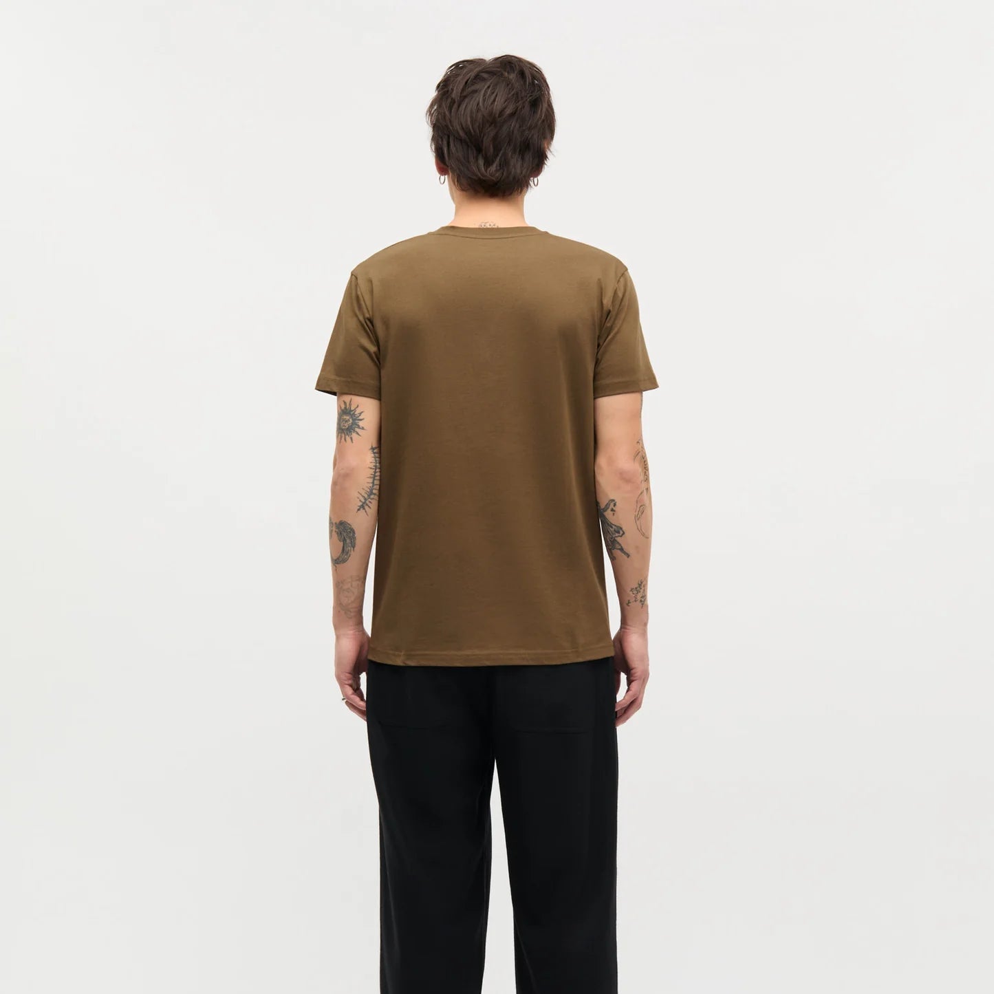 Denne olivengrønne T-shirt fra Mads Nørgaard forener enkelthed og kvalitet i et tidløst design. Den rene silhuet og klassiske rundhalsede pasform gør den ideel som basisdel i garderoben – lige nem at style til jeans, chinos eller under en skjorte. Den afdæmpede farve giver et afslappet og moderne udtryk, der passer til enhver lejlighed.