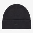 En minimalistisk og tidløs hue, der kombinerer funktionalitet og stil. Denne sorte beanie er strikket i en blød og varm kvalitet, som holder hovedet behageligt varmt på kolde dage. Designet har et opslag med diskret broderet “M N”-logo, der giver et elegant og afdæmpet udtryk.