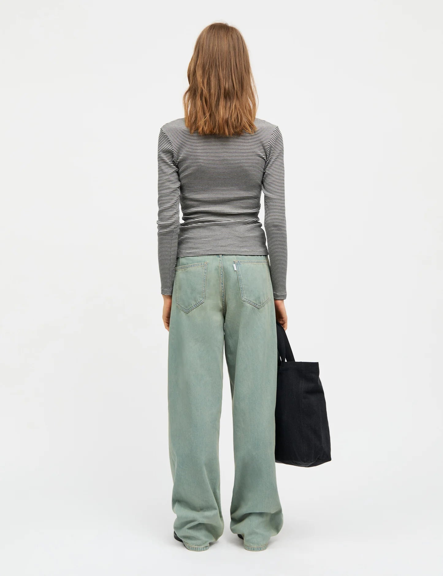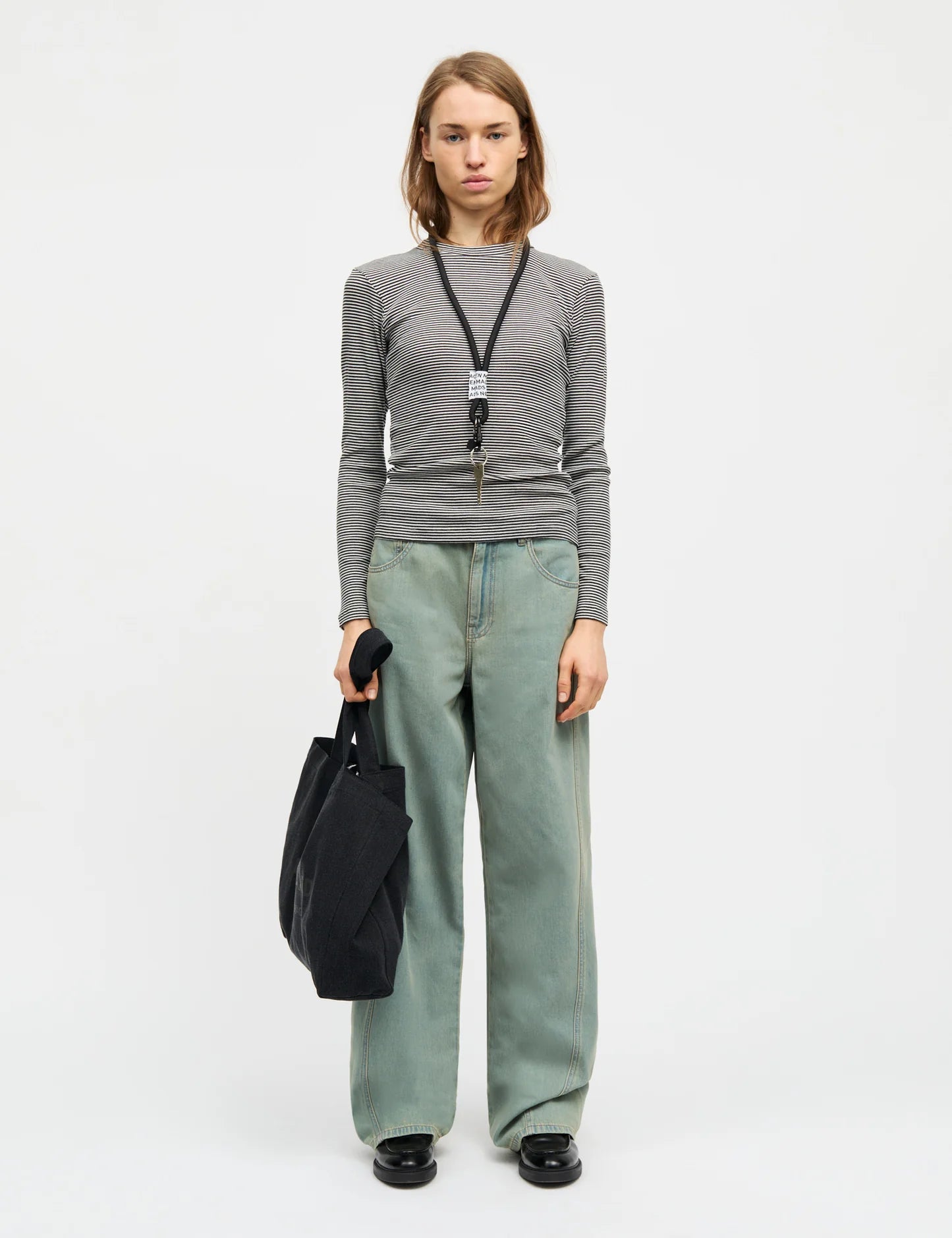 Mads Nørgaard W 2x2 Cotton Stripe Tuba Tee LS Black Vanilla Ice