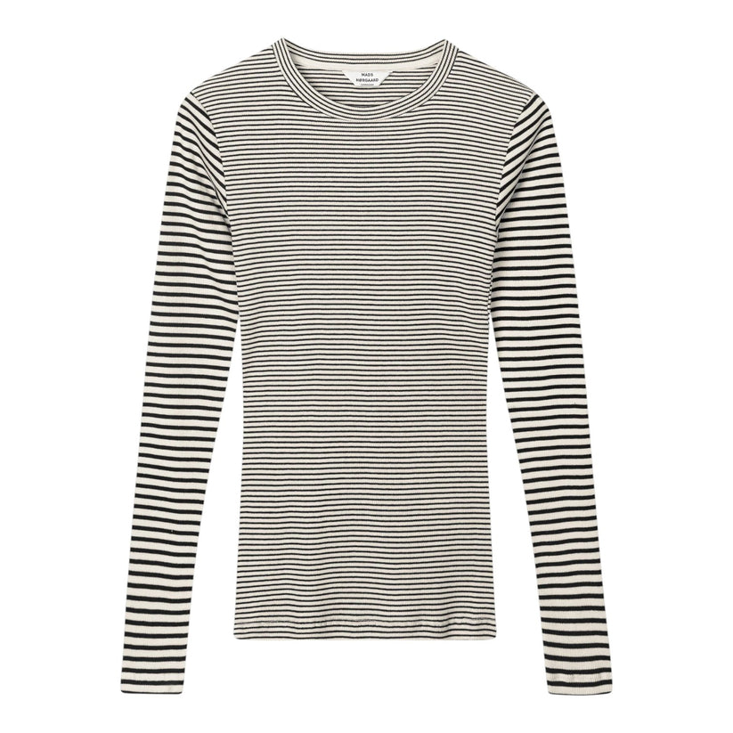 Mads Nørgaard W 2x2 Cotton Stripe Tuba Tee LS Vanilla Ice/ Black