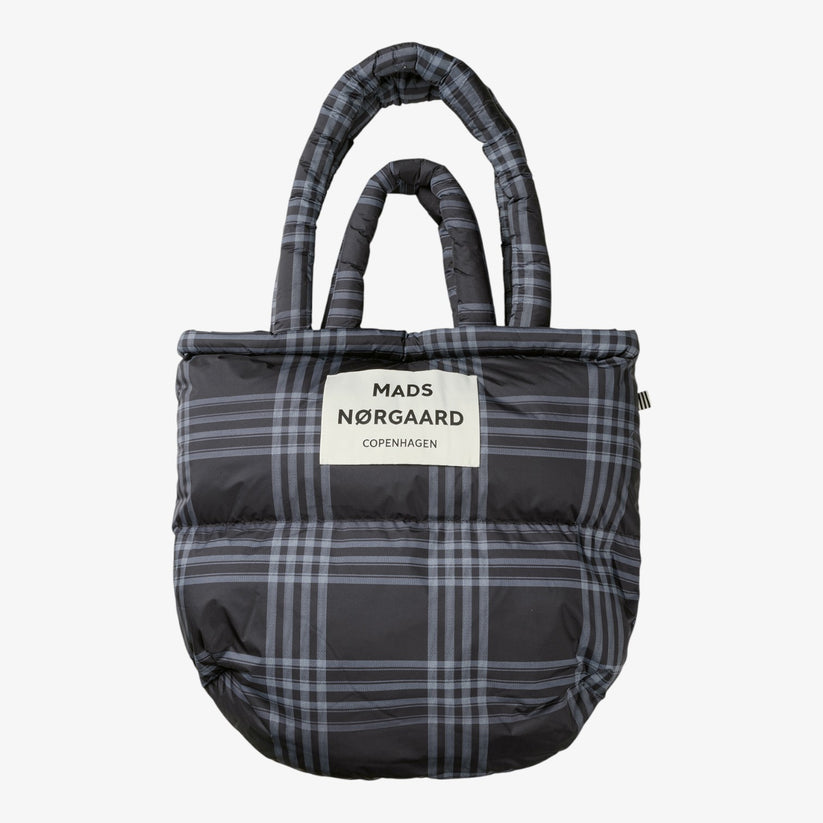 Denne populære Quilted Pillow Bag fra Mads Nørgaard kombinerer funktionalitet og design i ét. Tasken er fremstillet i et let, vatteret materiale med et moderne ternet mønster, der giver et både afslappet og stilfuldt udtryk.