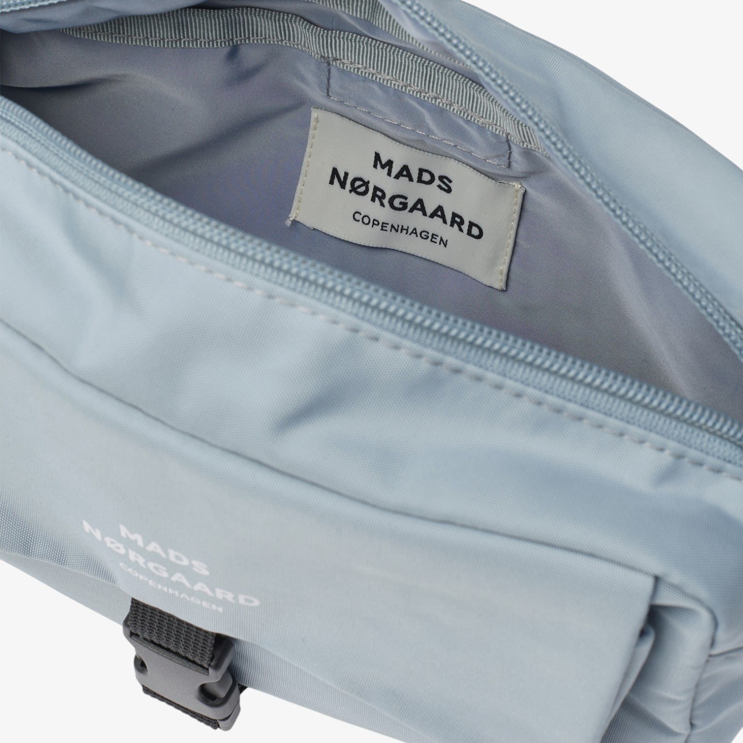 En moderne og funktionel taske fra Mads Nørgaard, designet til både hverdagsbrug og rejser. Tasken er fremstillet i 100% genanvendt polyester, som gør den både slidstærk og miljøvenlig. Den har et kompakt, men rummeligt design med lynlåslukning, frontlomme med spænde og justerbar rem med Nørgaard-logo i kontrast.