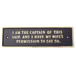 Flot messingskilt med teksten: "I Am The Captain Of This Ship And I Have My Wife´s Permission To Say So"