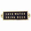 Messingskilt med teksten ”Save water drink beer”. Et sjovt citat som de fleste sejlere kan forstå!