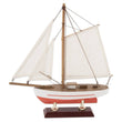 Dekorativ lille sejlskib i rødt/hvidt med mange fine detaljer.