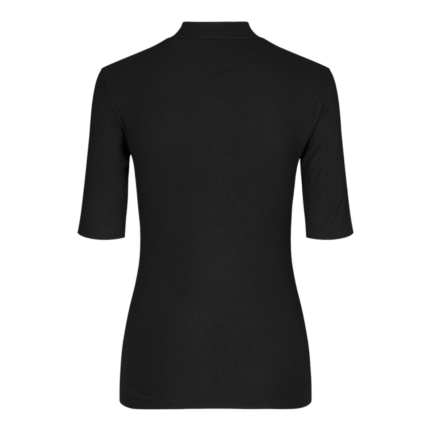- Design: Kortærmet T-shirt med høj hals og tætsiddende pasform, der fremhæver silhuetten.