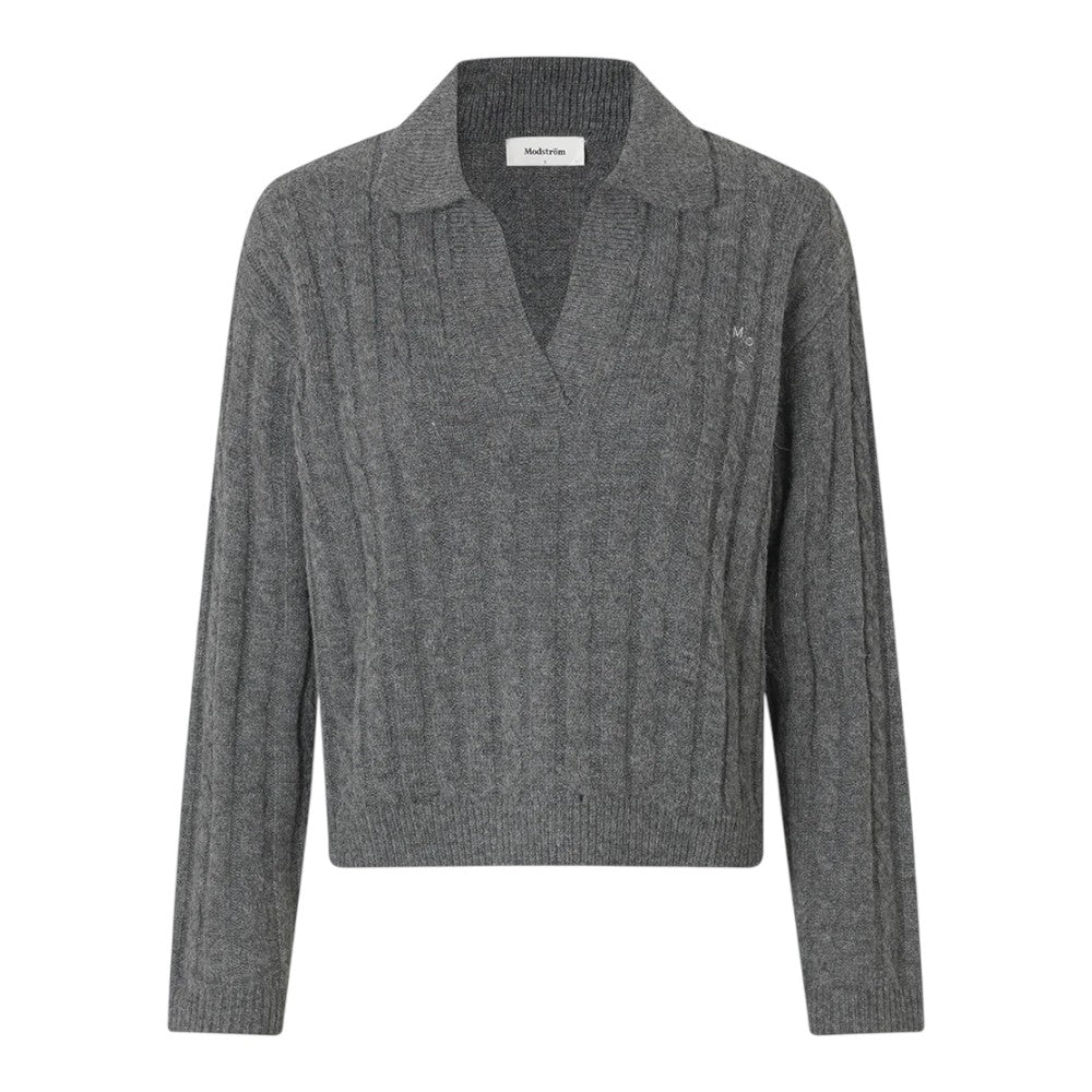 Polo inspireret strik. Risemd Polo er en tidsløs kabelstrik med broderet logo på brystet.