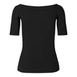 Tansy-toppen er designet med et minimalistisk og tidløst udtryk. Den brede halsudskæring foran og bagpå samt de smalle ærmer giver toppen et feminint og elegant look. Den slanke pasform er komfortabel uden at føles stram, hvilket gør den til et alsidigt valg til enhver garderobe.
