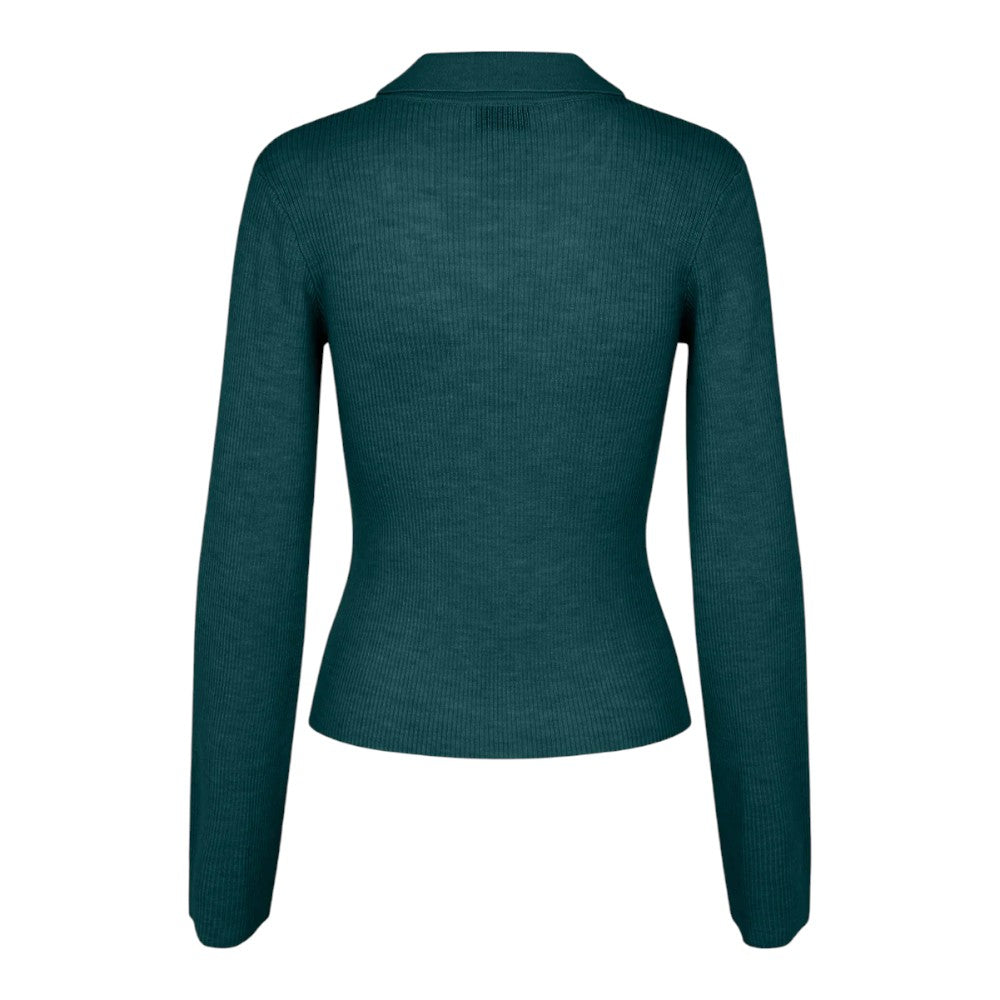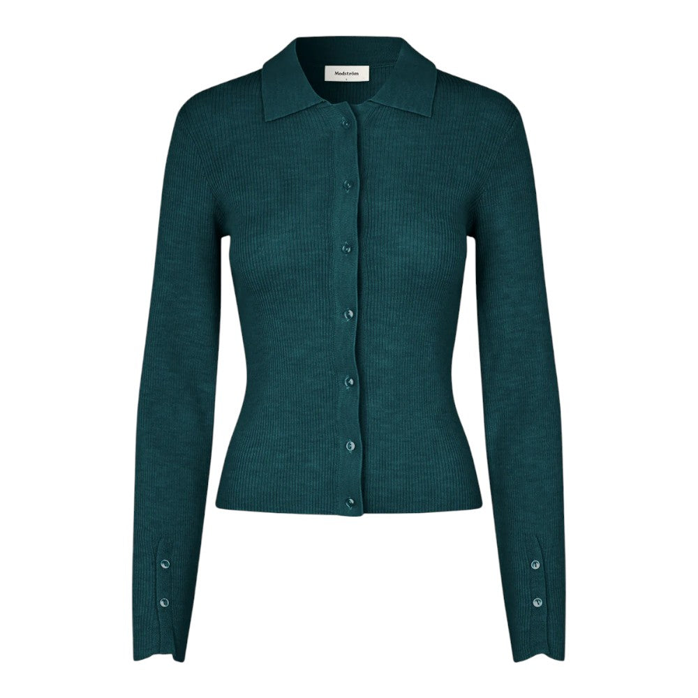 Grøn tætsiddende cardigan i blød ribstrik af uld. HirokiMD cardigan har krave, knapper foran og lange ærmer med slids og knapper.