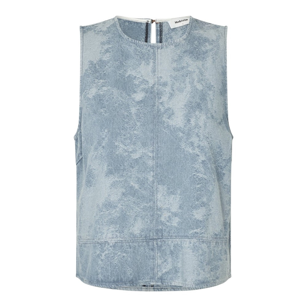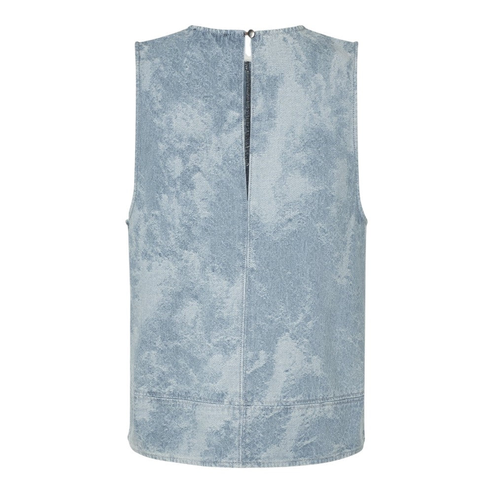 Ærmeløs denim top med rund hals i bomuldsdenim. Newlandmd top har en løs pasform og en åbning i nakken med knappelukning.