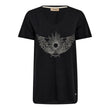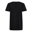 Denne elegante sorte t-shirt fra Mos Mosh kombinerer afslappet komfort med et eksklusivt twist. Fronten prydes af et smukt vinge- og solmotiv udført i glitrende krystaldetaljer, som giver et feminint og stilfuldt udtryk.